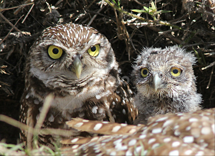 Baby Great Horned Owl and Mother at Red Rock Nevada. 75 x 5 inches in PDF.